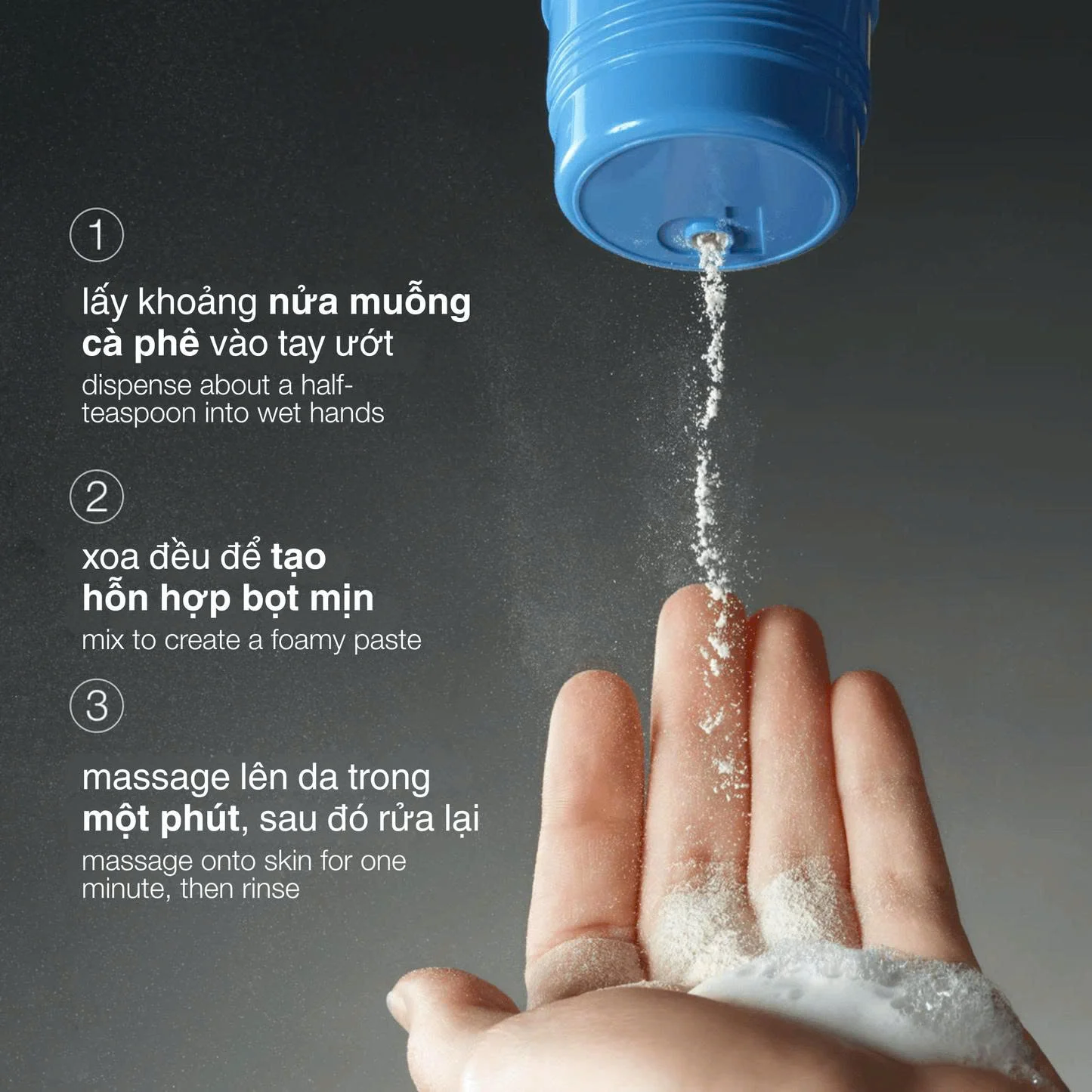 Bước 2: Lấy khoảng nửa muỗng cà phê Daily Milkfoliant vào lòng bàn tay.