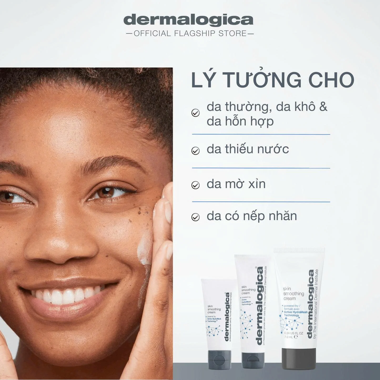 Skin Smoothing Cream là dòng kem dưỡng ẩm bán chạy nhất của Dermalogica, được nâng cấp với công nghệ tiên tiến giúp cung cấp độ ẩm liên tục cho da trong suốt 48 giờ. Sản phẩm không chỉ đơn thuần là cấp nước mà còn hoạt động như một lớp màng bảo vệ, giúp ngăn chặn sự mất nước xuyên biểu bì và bảo vệ hệ vi sinh vật tự nhiên trên da. Tại Đại lý Ánh Loan, đây là giải pháp hoàn hảo cho làn da hỗn hợp thiên khô hoặc da đang gặp tình trạng mất nước, thô ráp.