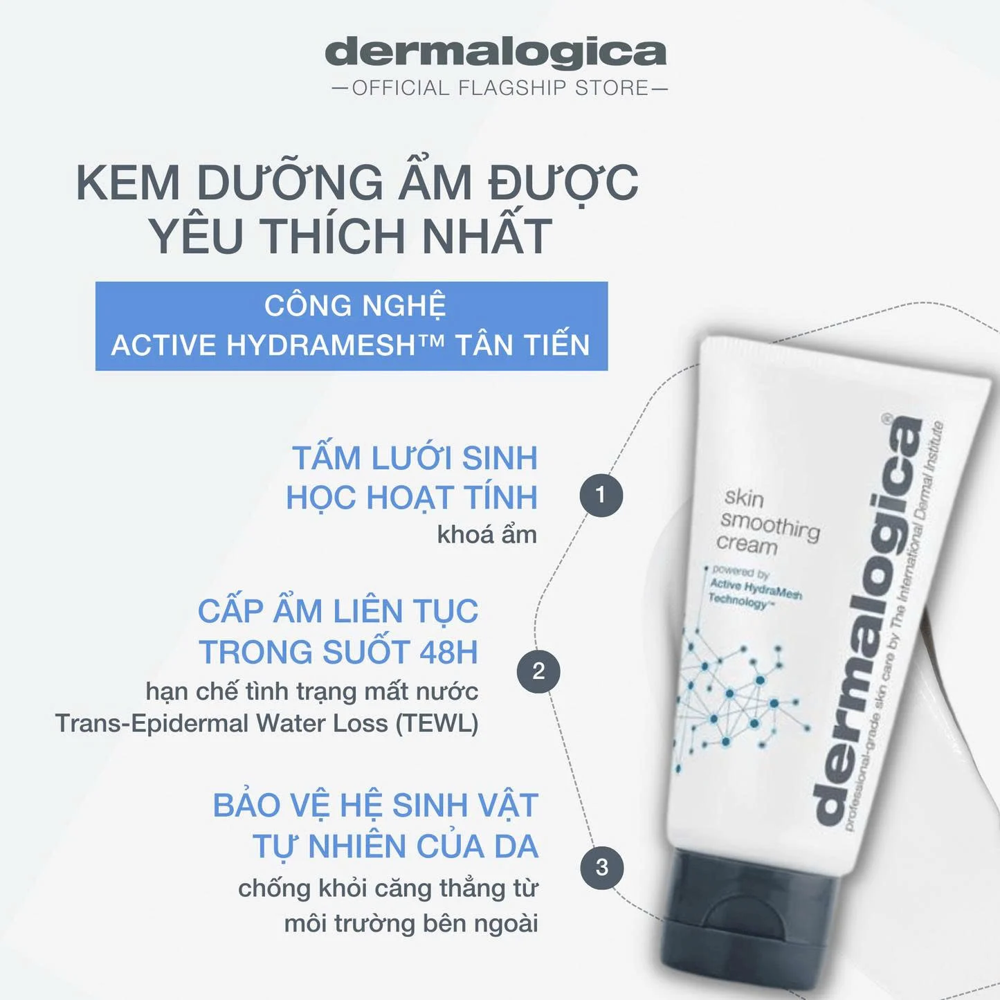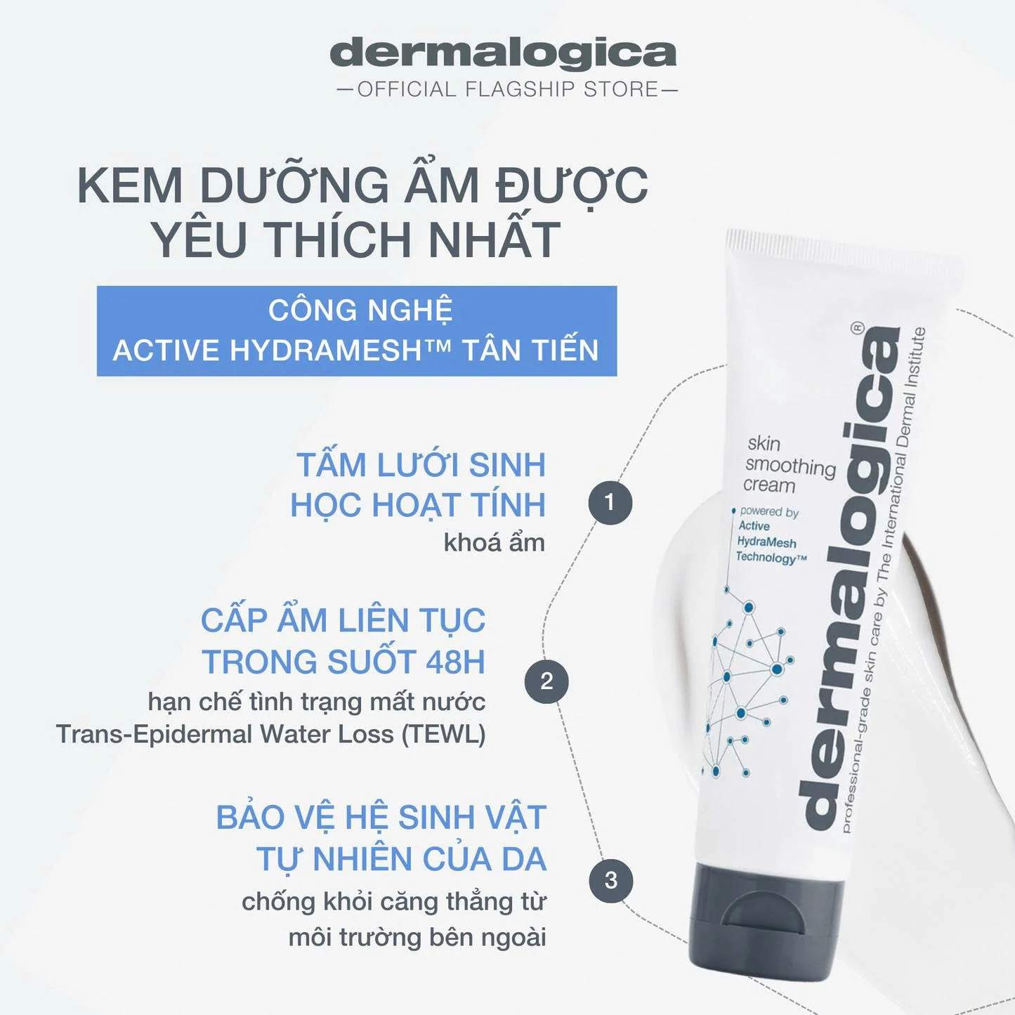 1. Công nghệ Active HydraMesh: Một phức hợp tiên tiến giúp tạo màng bảo vệ vô hình, giảm thiểu tình trạng mất nước và bảo vệ các lợi khuẩn trên da.