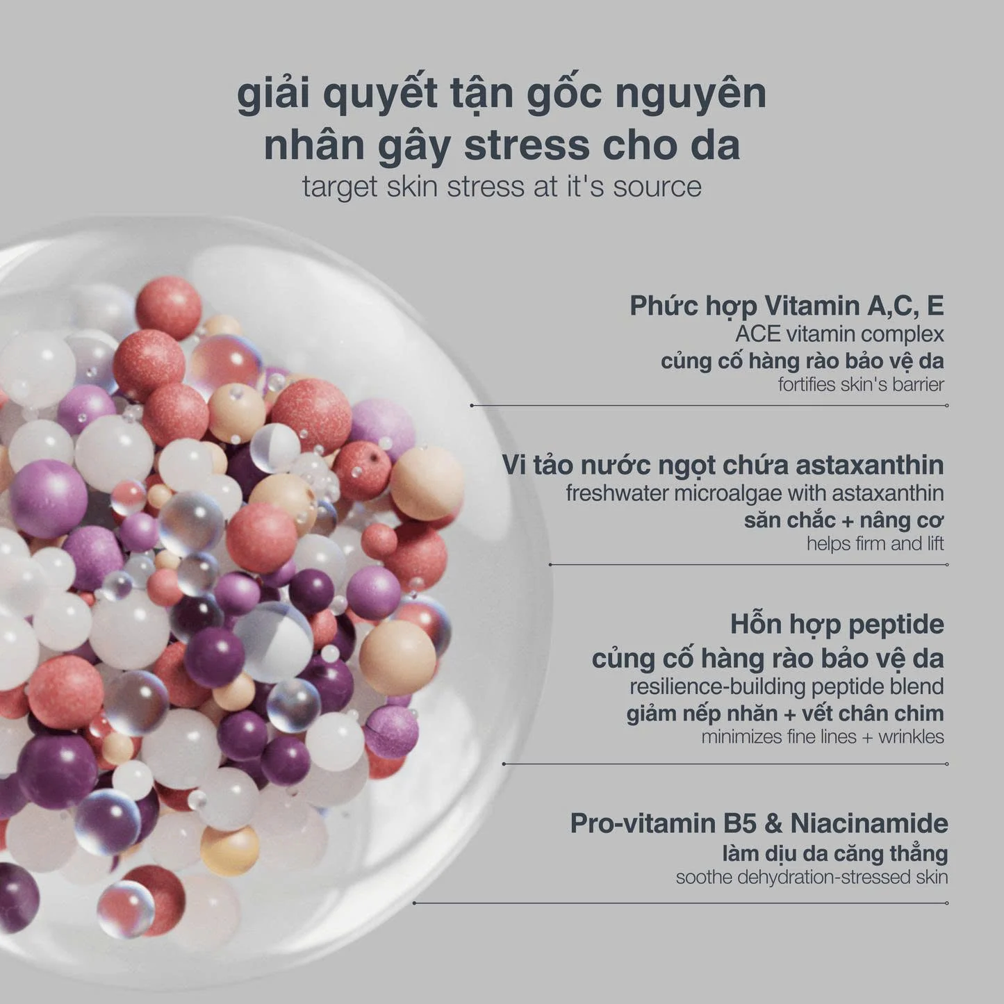 Phục hồi da cấp tốc: Cung cấp hàm lượng Vitamin dồi dào giúp làm dịu và sửa chữa các tế bào da bị tổn thương bởi môi trường.