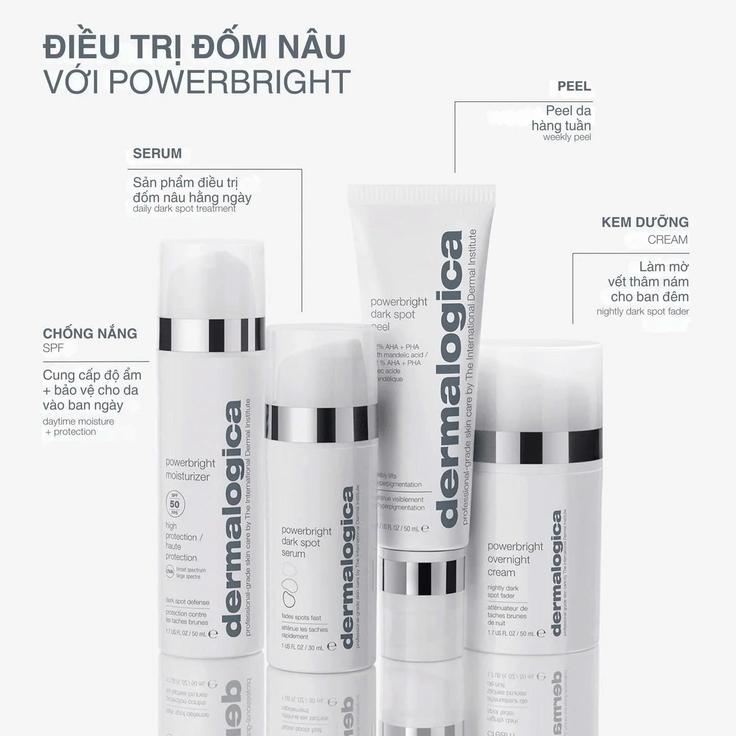 • Bước 4: Sử dụng đều đặn mỗi buổi sáng. Đừng quên kết hợp với kem dưỡng PowerBright Moisturizer SPF50 vào ban ngày để bảo vệ kết quả điều trị.